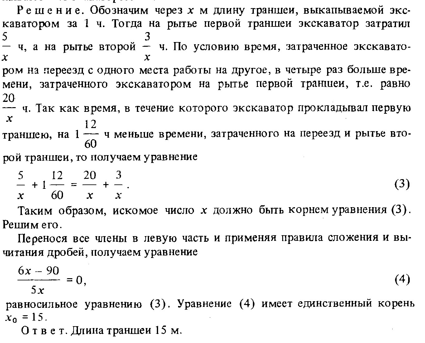 Экскаваторщик выкопал две траншеи в разных местах: сначала он выиграл траншею длиной 5 м, потом переехал на другое место и вырыл траншею длиной 3 м. На рынке первой траншеи он затратил времени на 1 ч 12 мин меньше, чем переезд и рытье второй траншеи. Если бы производительность экскаватора была вчетверо меньше. То время рытья первой траншеи равнялось бы времени переезда. Сколько метров траншеи в час выкапывал экскаватор?