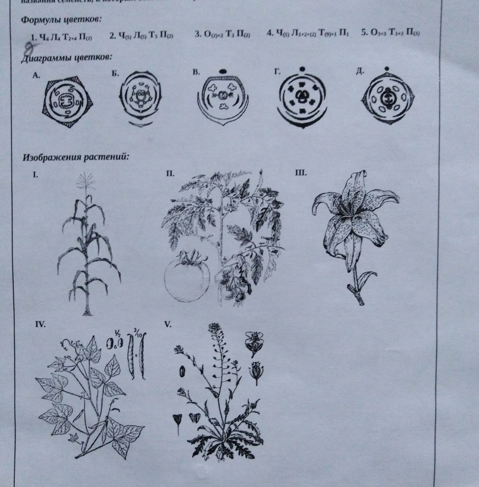 Сопоставте фурмулу цветка со схемой, а схему с растением