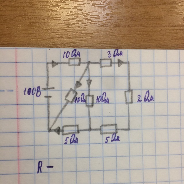 справа налево послед (3+2+5)=10 Ом, 10||10=5 Ом, послед (5+5)=10 Ом, 10||10=5 Ом, послед R=10+5=15 Ом