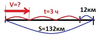 Мотоциклист ехал 3 ч с некоторой скоростью.Если он проедет ещё 12 км,то его путь станет равен 132 км.С какой скоростью ехал мотоциклист?