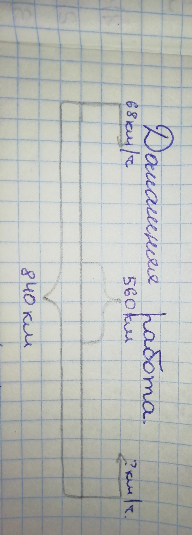 На рисунке другое условие. 560 км - это расстояние между машинами через какой-то промежуток времени. Недостаточно данных для решения задачи.