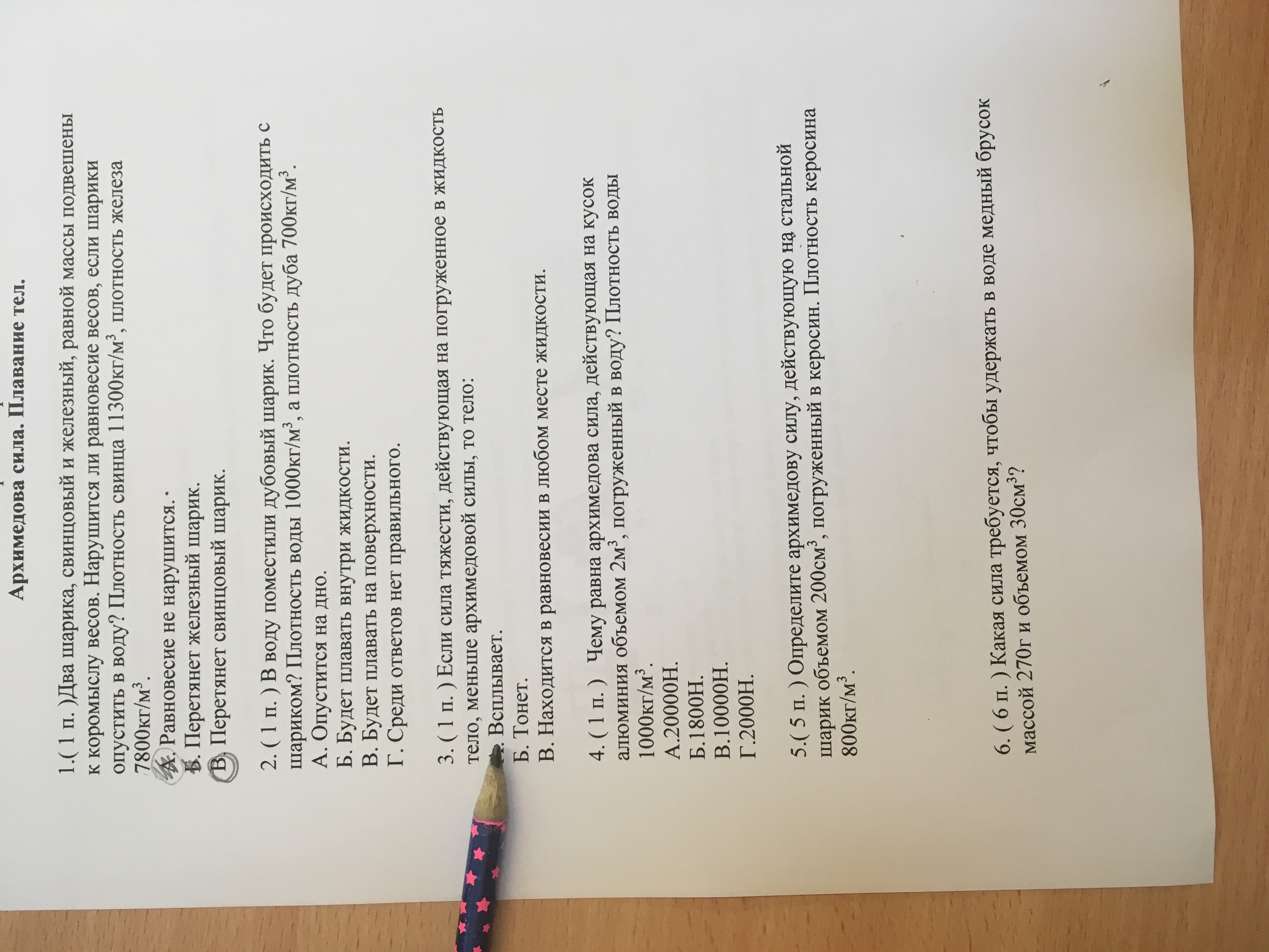 6 F=Fтяжести-Fархимеда= mg-pgV=0.27*9.8-1000*9.8*0.00003=2.352H