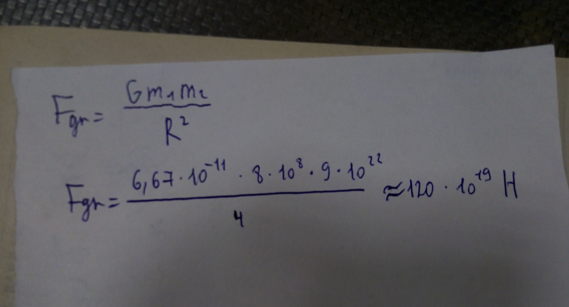 Рассчитайте силу притяжения между, летящим мимо Марса, астероидом массой 8*108кг и Марсом массой 9*1022кг на подлётном расстоянии 2км.