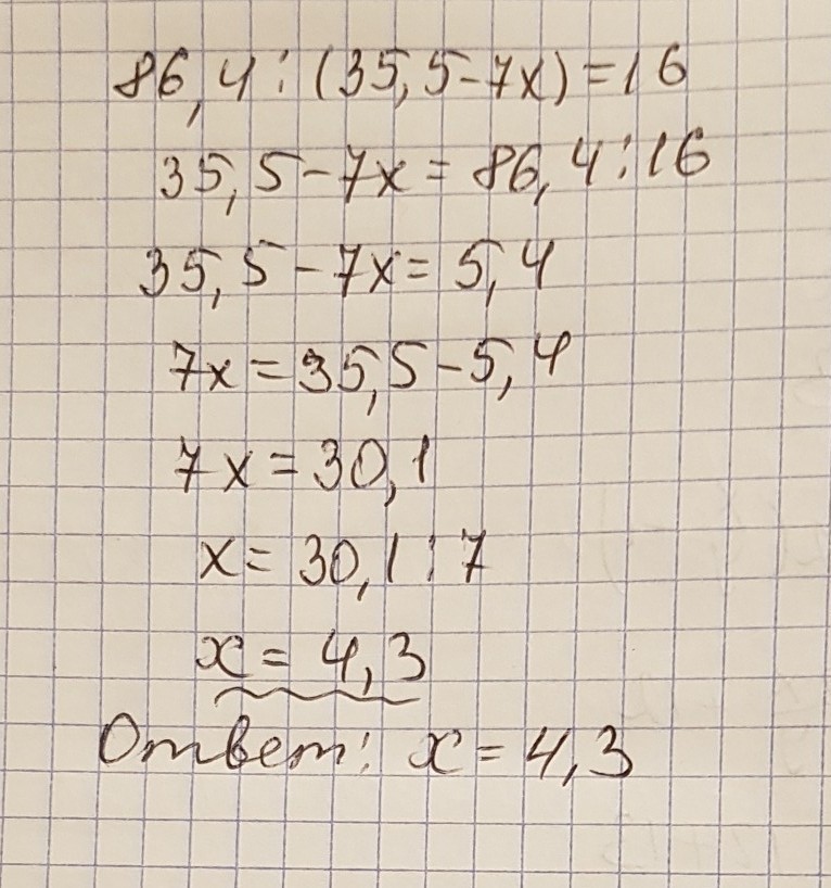 Реши уравнение используя зависимость между компонентами действий алгоритм 86, 4 :(35 ,5 - 7 x )равно 16