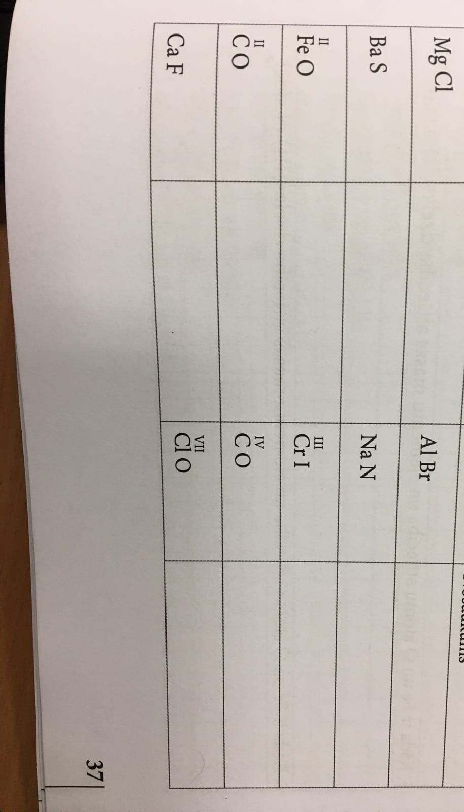MgCl2, FeO, CaF2, BaS, CO, AlBr2, CO2, CrI3, Na3N, Cl2O