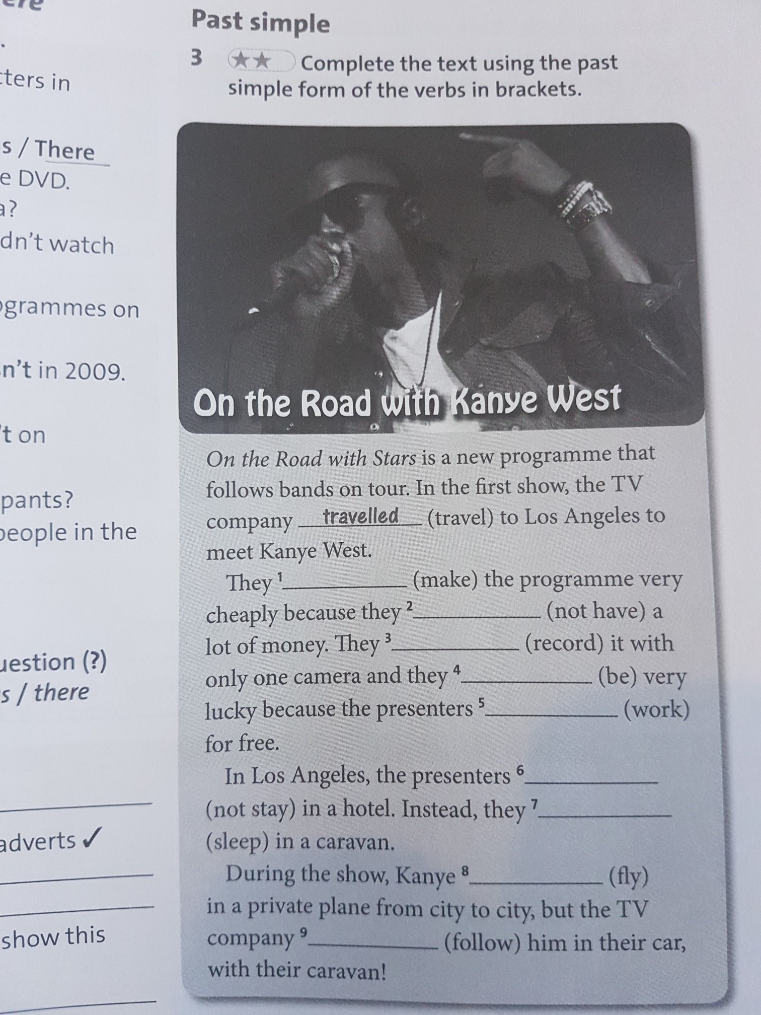 made,didn’t have,recorded, were, worked,didn’t stay, slept,flew,followed