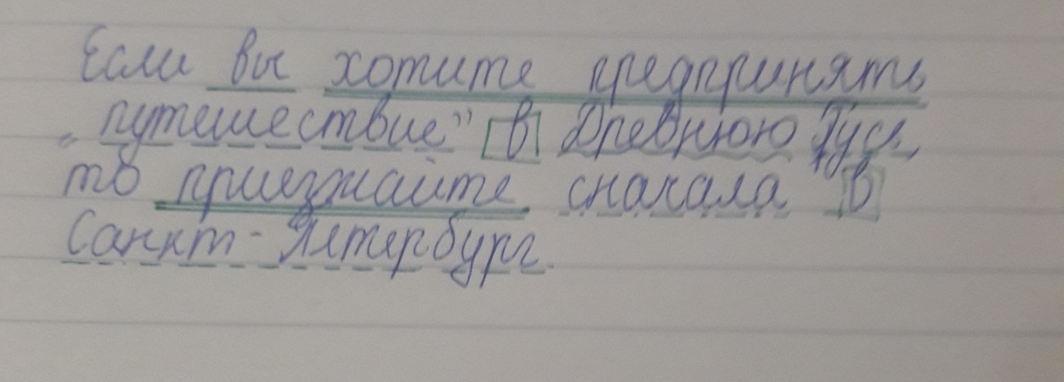 Разобрать по членам и подчеркнуть: Если вы хотите предпринять «путешествие» в Древнюю Русь, то поезжайте сначала в Санкт-Петербург. (Помогите пожалуйста)