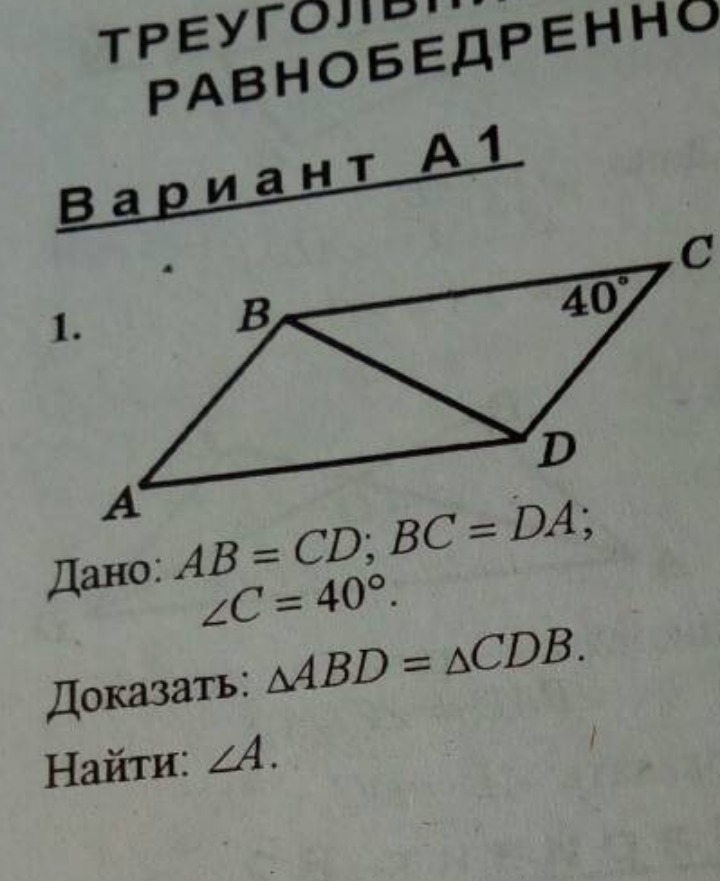 треугольники равны так как сторона ВD общая а противоположные стороны соответственно равны