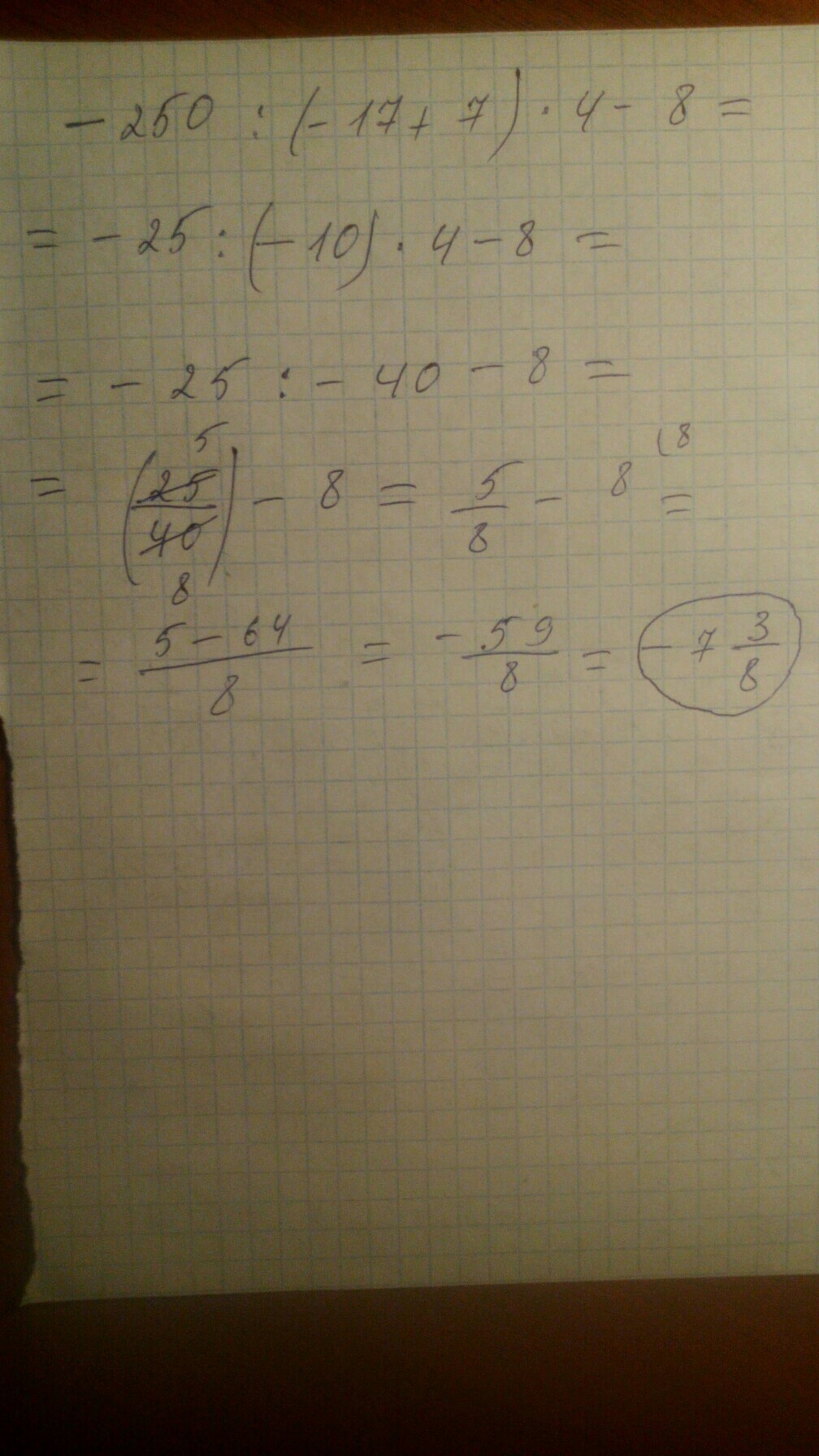 -250:(-17+7)•4-8=92