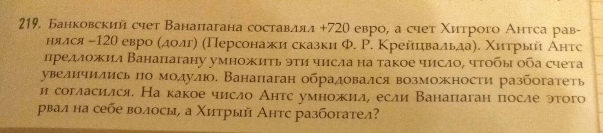 На отрицательное число, например на -2, тогда счёт Антса будет составлять 240, а счёт Ванапагана -1440. Хотя оба числа по модулю увеличились