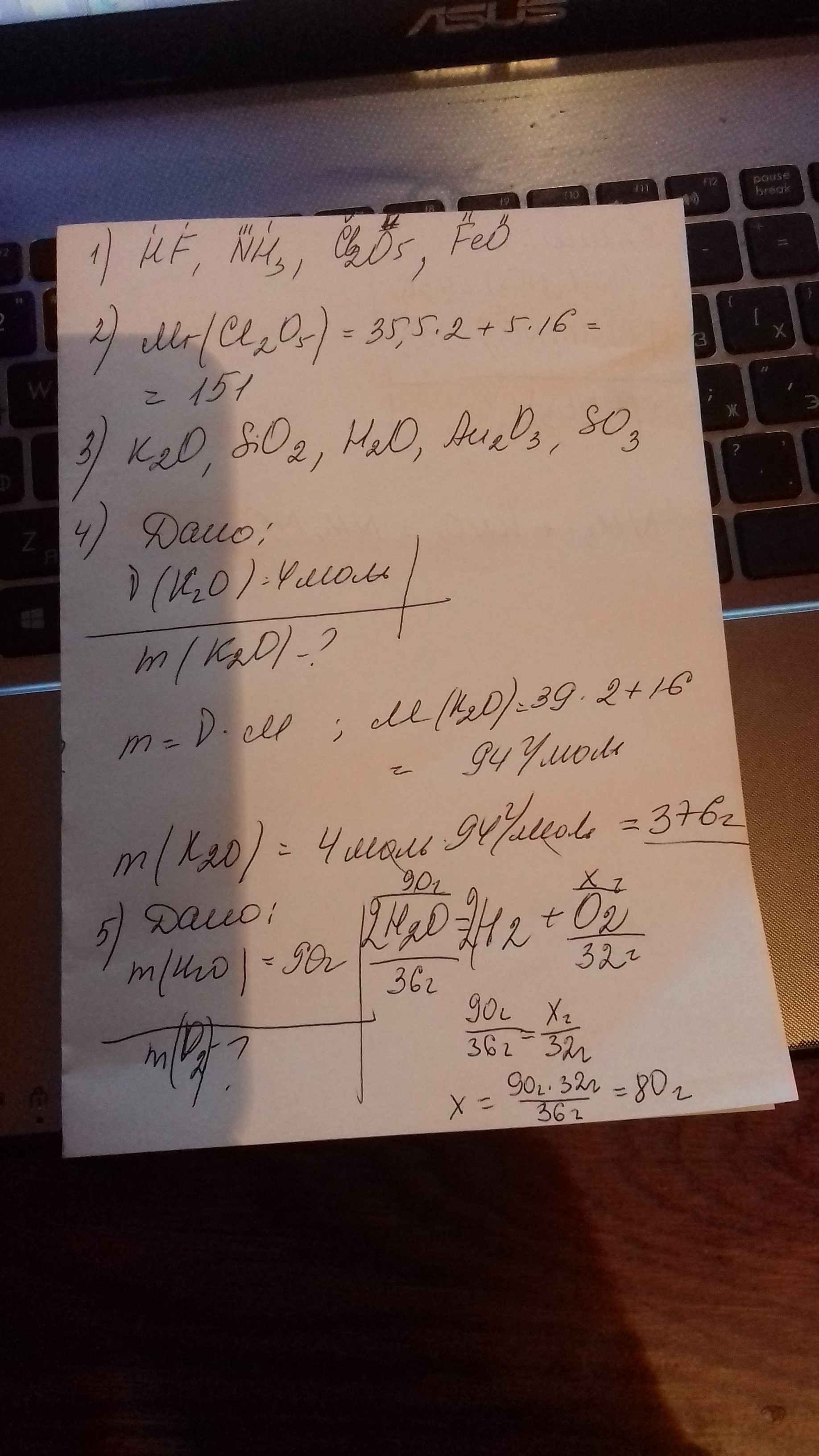 4. Вычислите массу 4 моль К2 О