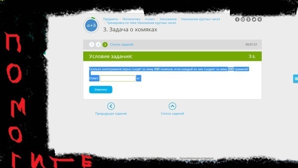 Сколько килограммов зерна съедят за зиму 440 хомяков, если каждый из них съедает за зиму 800 граммов? помогите пж