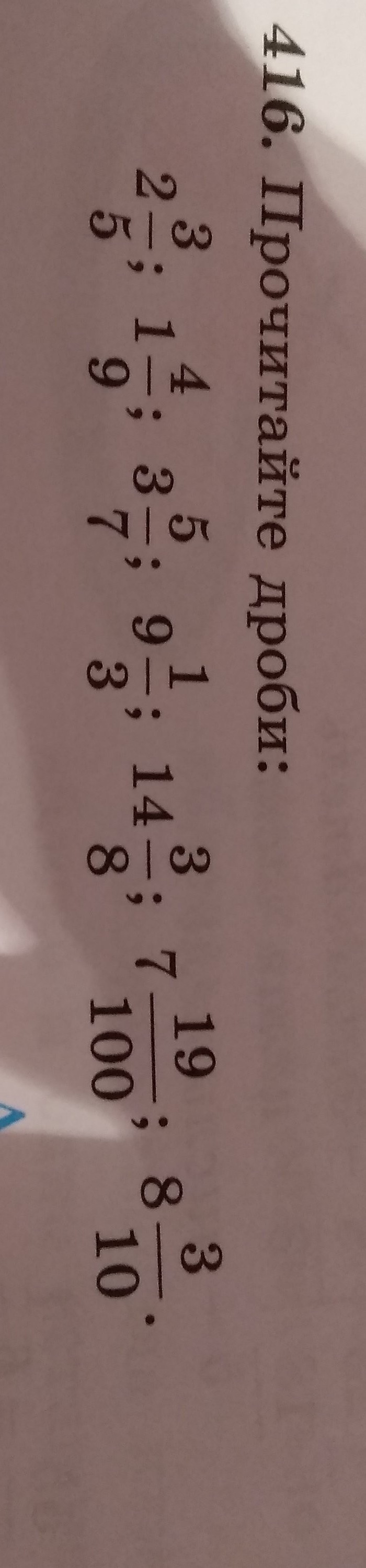 две целыетри пятые,одна целая четыре девятые, три целые пять седьмые, девять целые одна третья, четырнадцать целые три восьмые, семь целые девятнадцать сотые, восемь целые три десятые