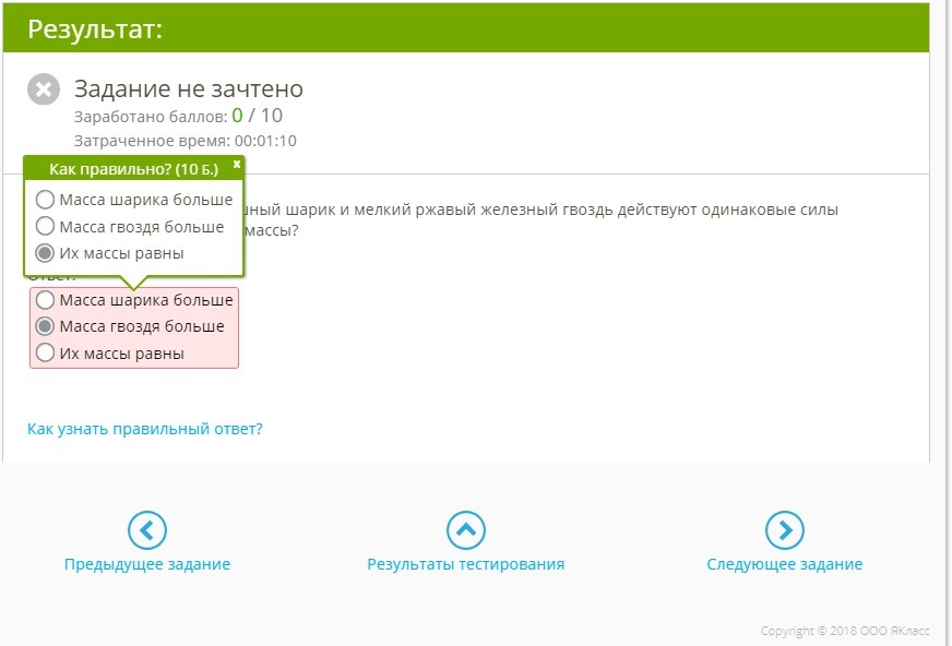 На голубой большой воздушный шарик и мелкий ржавый железный гвоздь действуют одинаковые силы тяжести. Как отличаются их массы?
