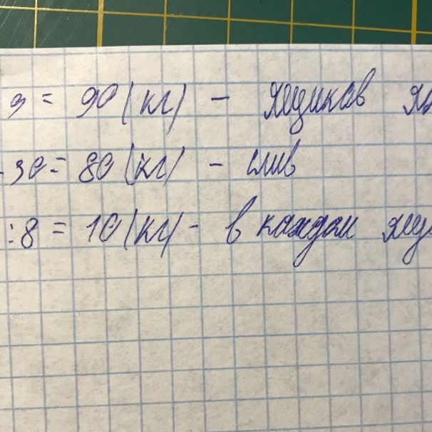 В детский сад привезли 10 ящиков яблок, по 9 КГ в каждом, и 8 одинаковых по массе ящиков слив. Всего привезли 170 КГ фруктов. Сколько КГ слив было в одном ящике?