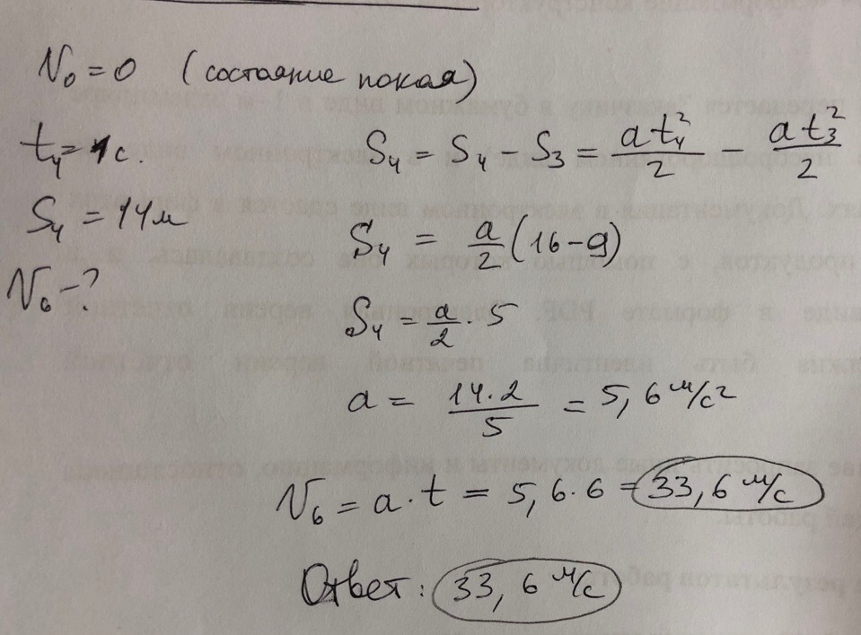 самолет велосервис равноускоренно из состояния покоя за 4 секунду разгона проходит 14 метров какую скорость развивает самолет в конце 6 секунды разгона