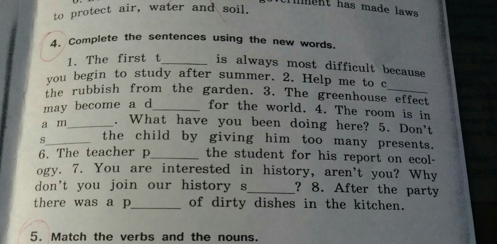 1 term 2 clear 3 danger 4 mess 5 spoil 6 praised 7 section 8 pile
