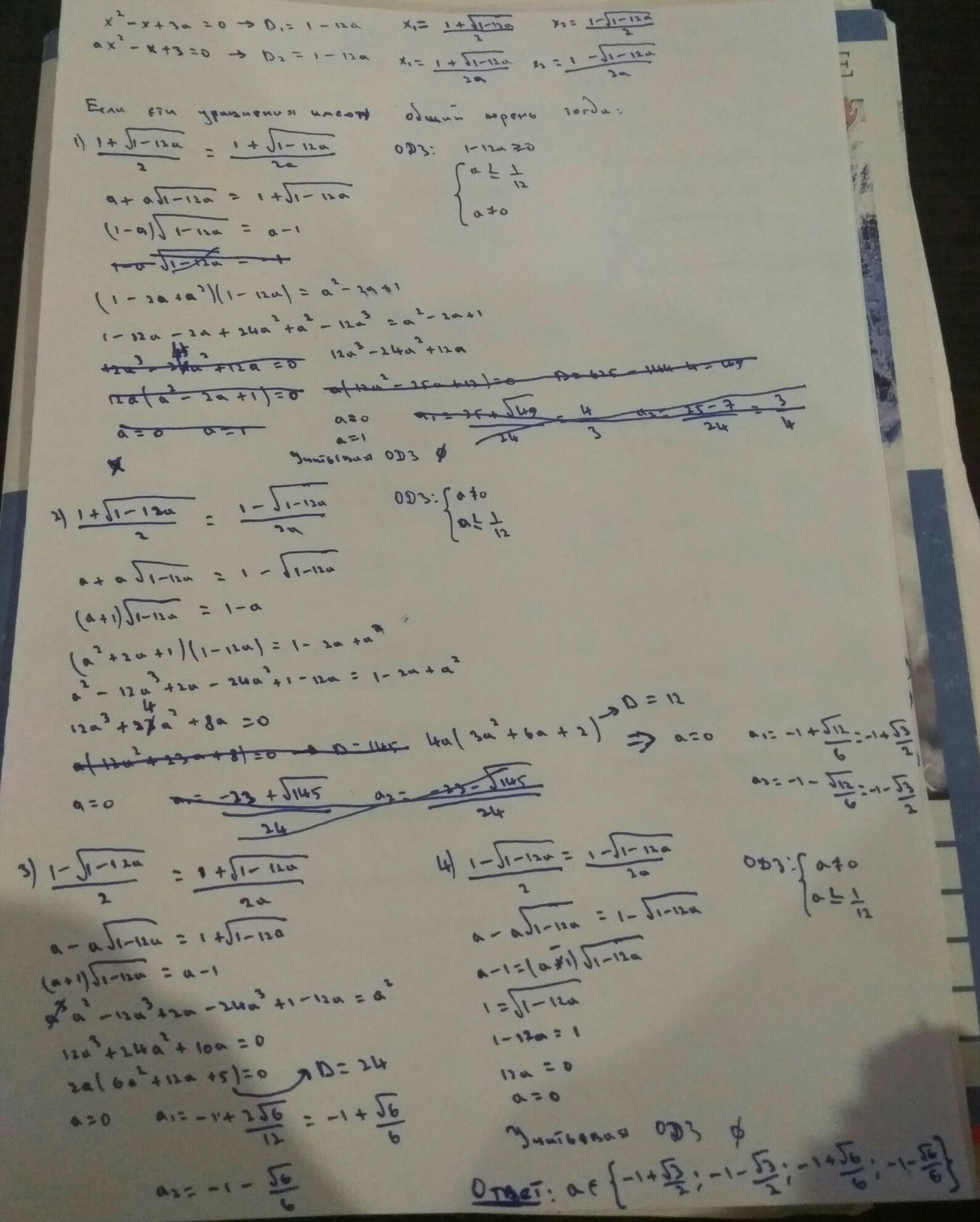 Если а > 1/12, тогда уравнение не имеет действительных корней.