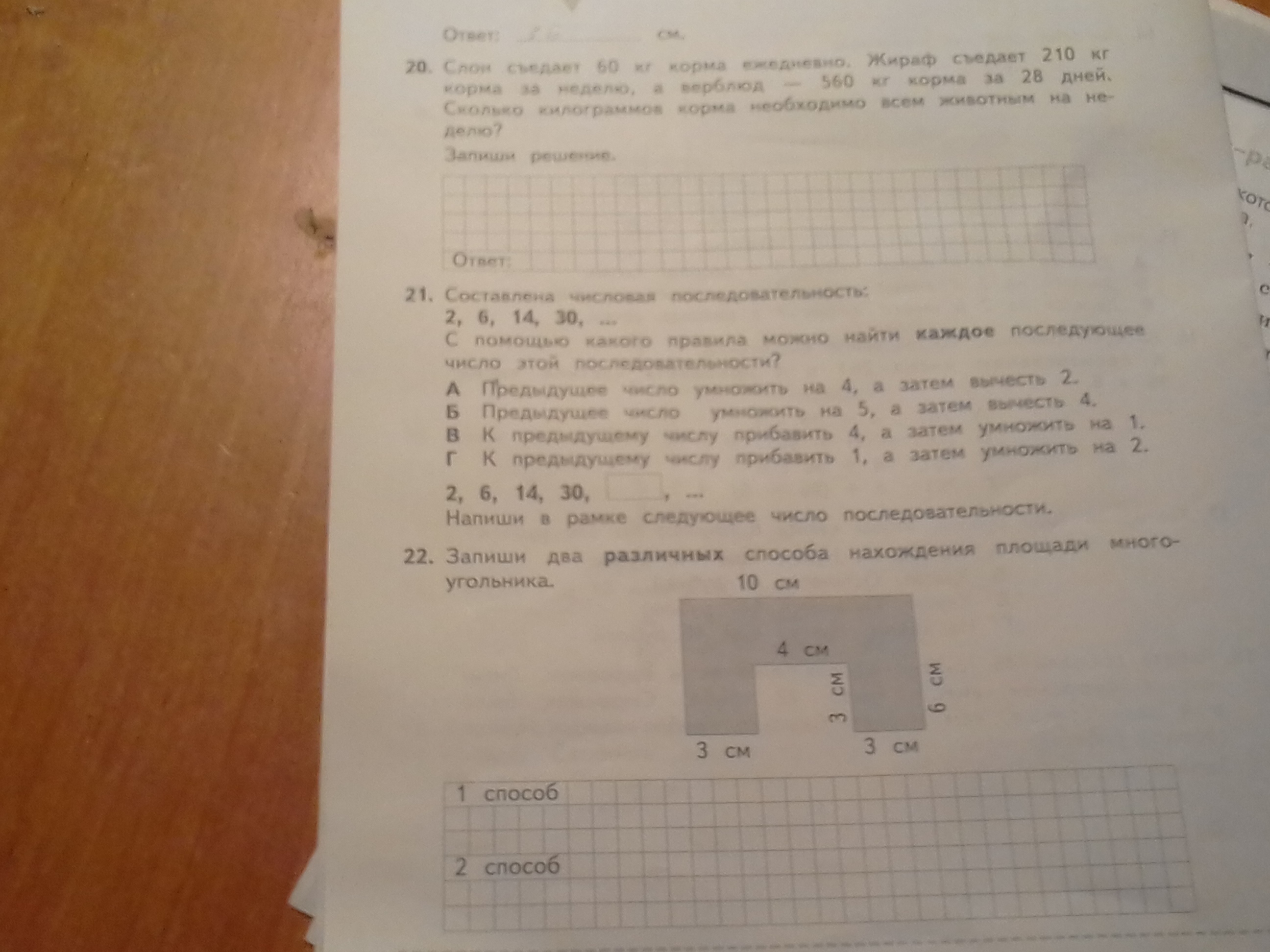 20 слон съедает 60 кг корма ежедневно. Жираф съедает 210 кг корма за неделю, а верблюд - 510 кг корма за 28 дней. Сколько килограммов корма необходимо всем животным на неделю?