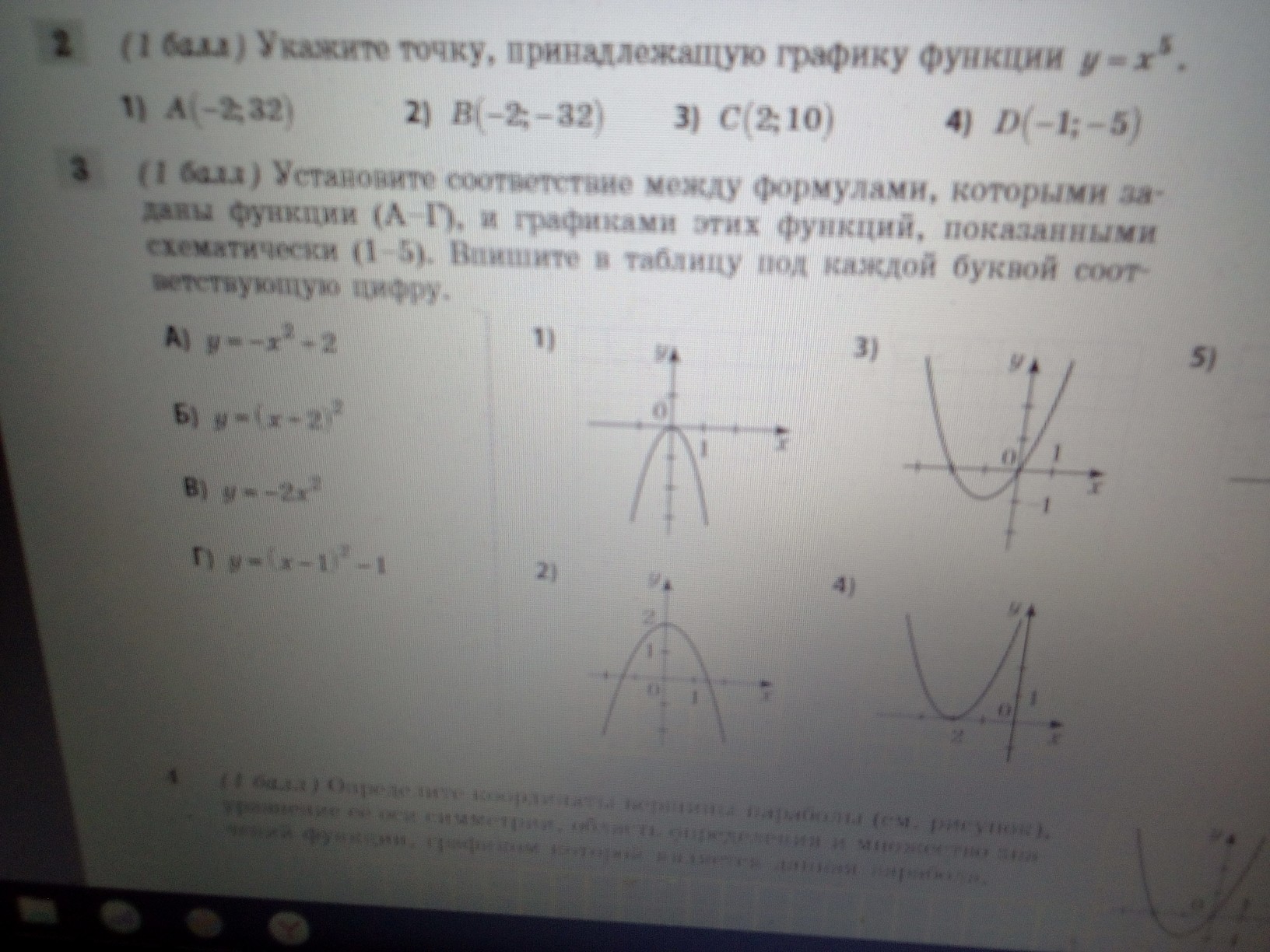 А-2 В-1 Б-4 3-й это график (х+1)^2-1 5-го графика не видно