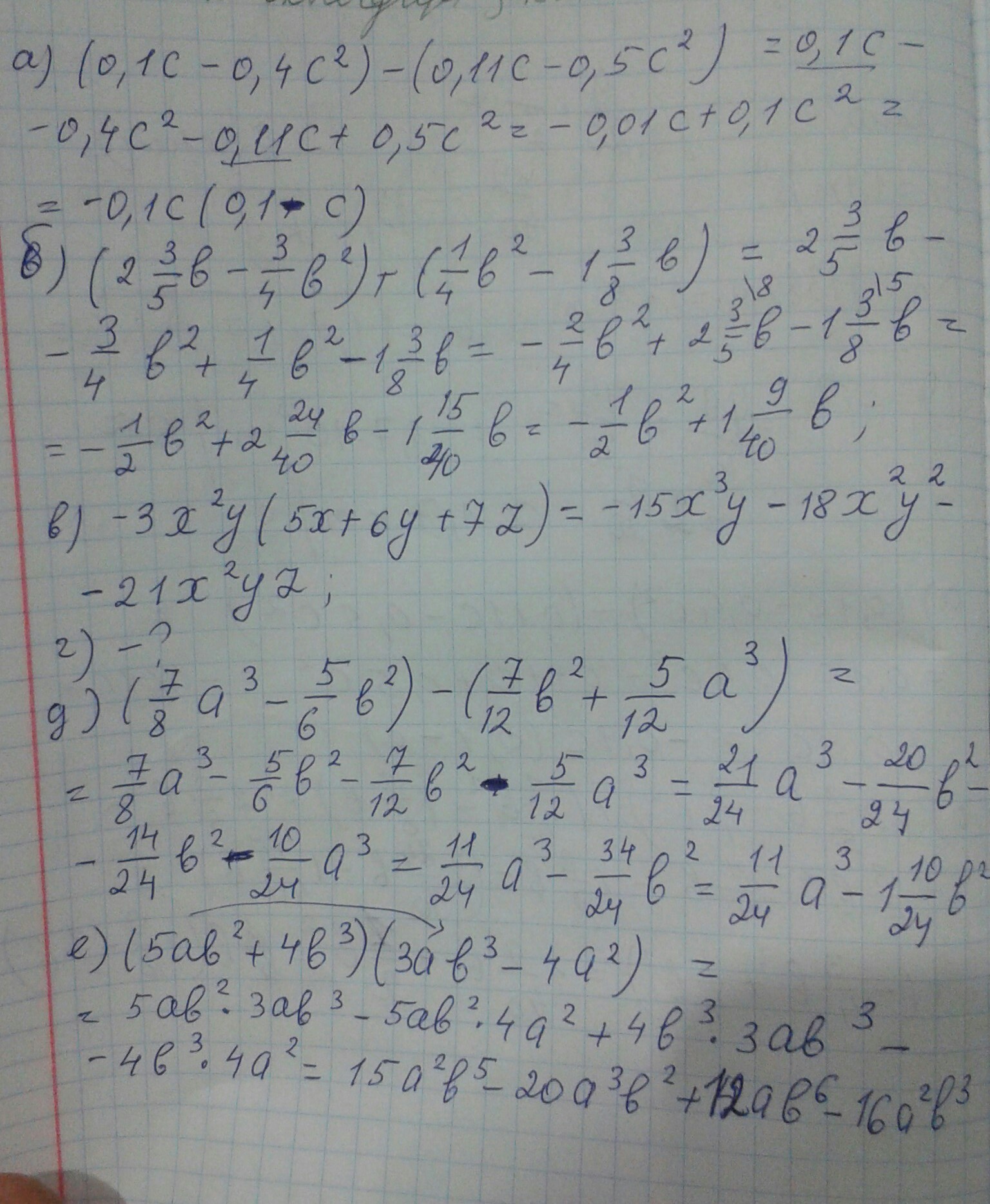 д)(7/8а^3-5/6в^2)-(-7/12в^2+5/12а^3)=7/8а^3-5/6в^2+7/12в^2-5/12а^3=21/24а^3-10/12в^2+7/12в^2-10/24а^3=11/24а^3-3/12в^2