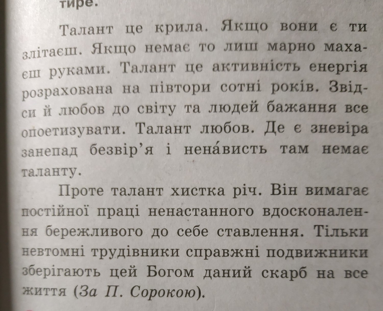 Проте талант-- хистка річ.Він вимагає постійної праці,ненастанного вдосконалення,бережливого до себе ставлення.Тільки невтомні трудівники,справжні подвижники,зберігають цей Богом данний скарб на все життя.