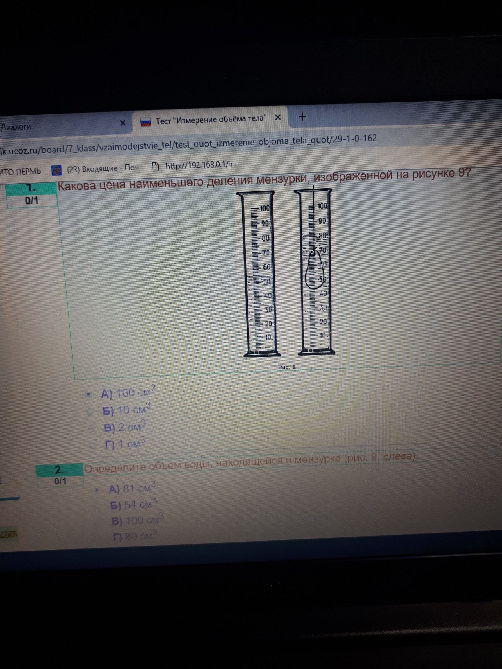 1)Берем два любых числа на мензурке.В нашем случае нужно узнать ц.д.наименьшего деления мензурки.Это 10