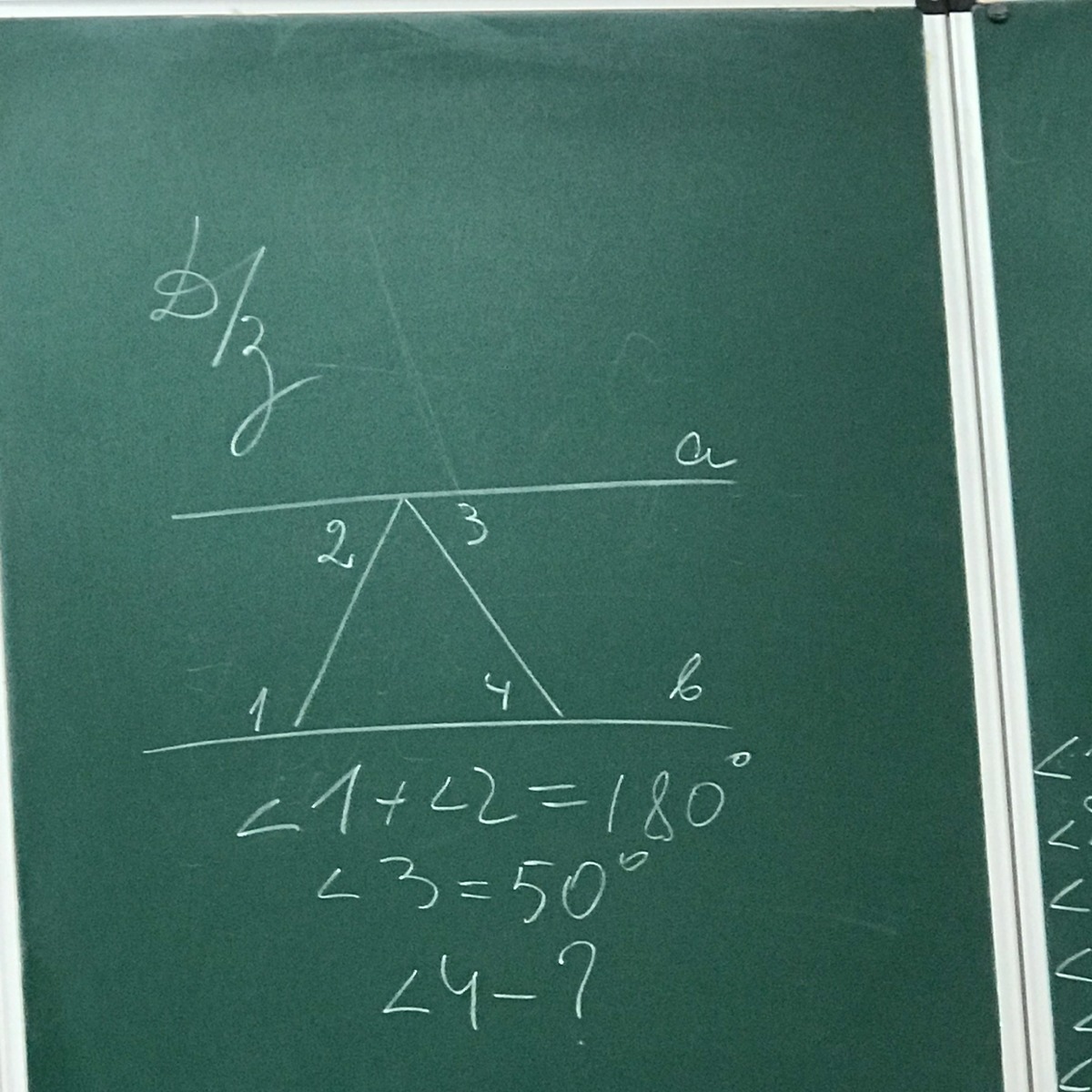 т. к. ∠1+∠2=180, то а║b. Отсюда ∠4=∠3=50° -как внутренние накрест лежащие углы