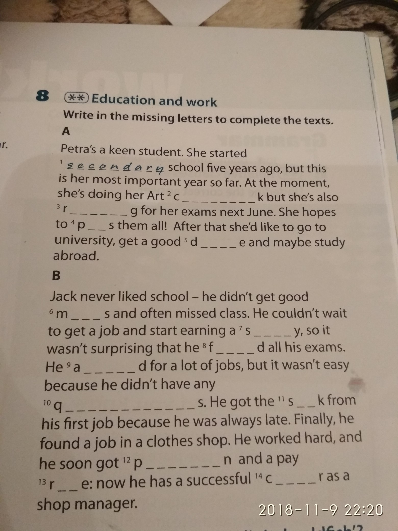 2 coursework 3 revising 4 pass 5 degree 6 marks 7 salary 8 failed 9 applied 10 qualifications 11 sack 12 promotion 13 rise 14 career