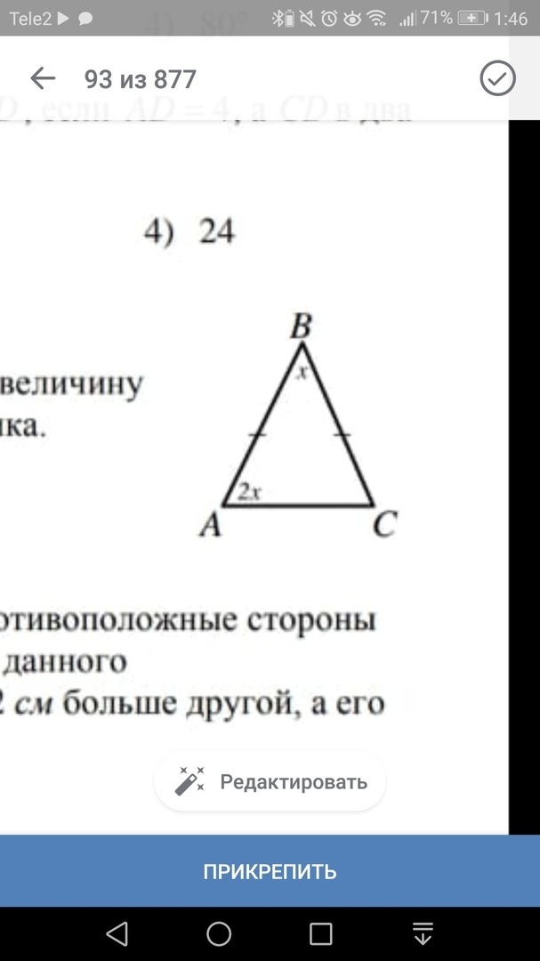 пользуясь данными на рисунке найдите величину большего угла равнобедренного треугольника
