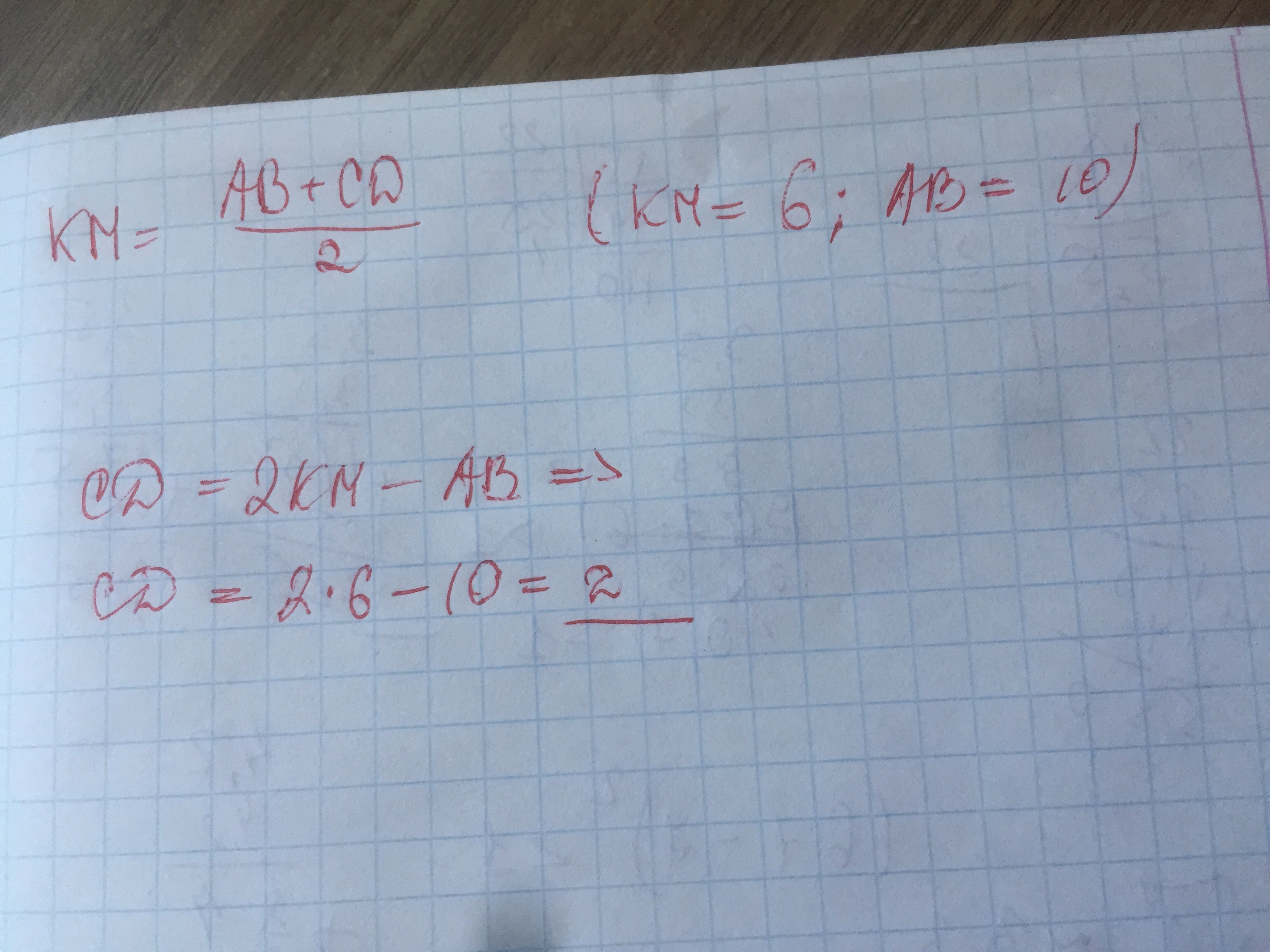 Средняя линия трапеции равна полусумме оснований. неизвестное основание х, тогда (10+x)/2=6