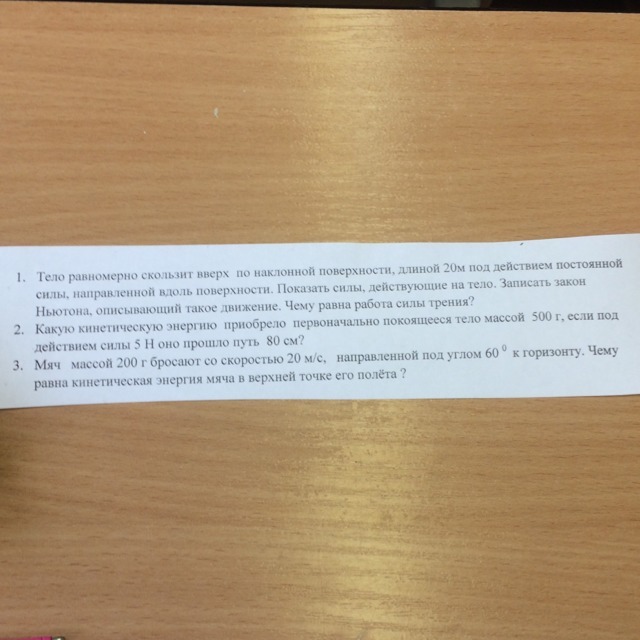 3) W=m*vx²/2=m*v²*cos²α/2=0.2*20²*0.5²/2=10 Дж
