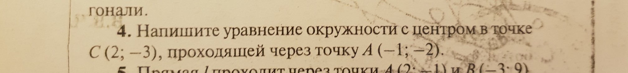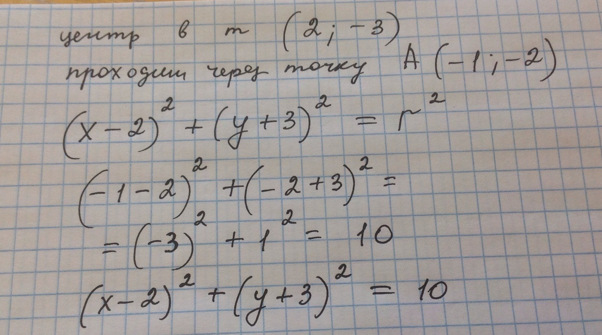 (х-2)²+(у+3)²=r²