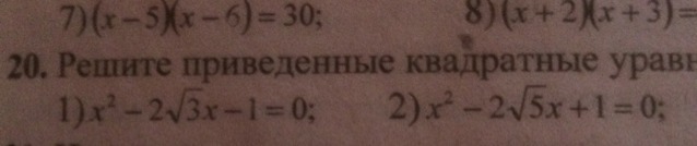 х₁= -(-2√5)/2+√((-2√5)/2 )²-1 ) х₂= -(-2√5)/2-√((-2√3)/2 )²-1)