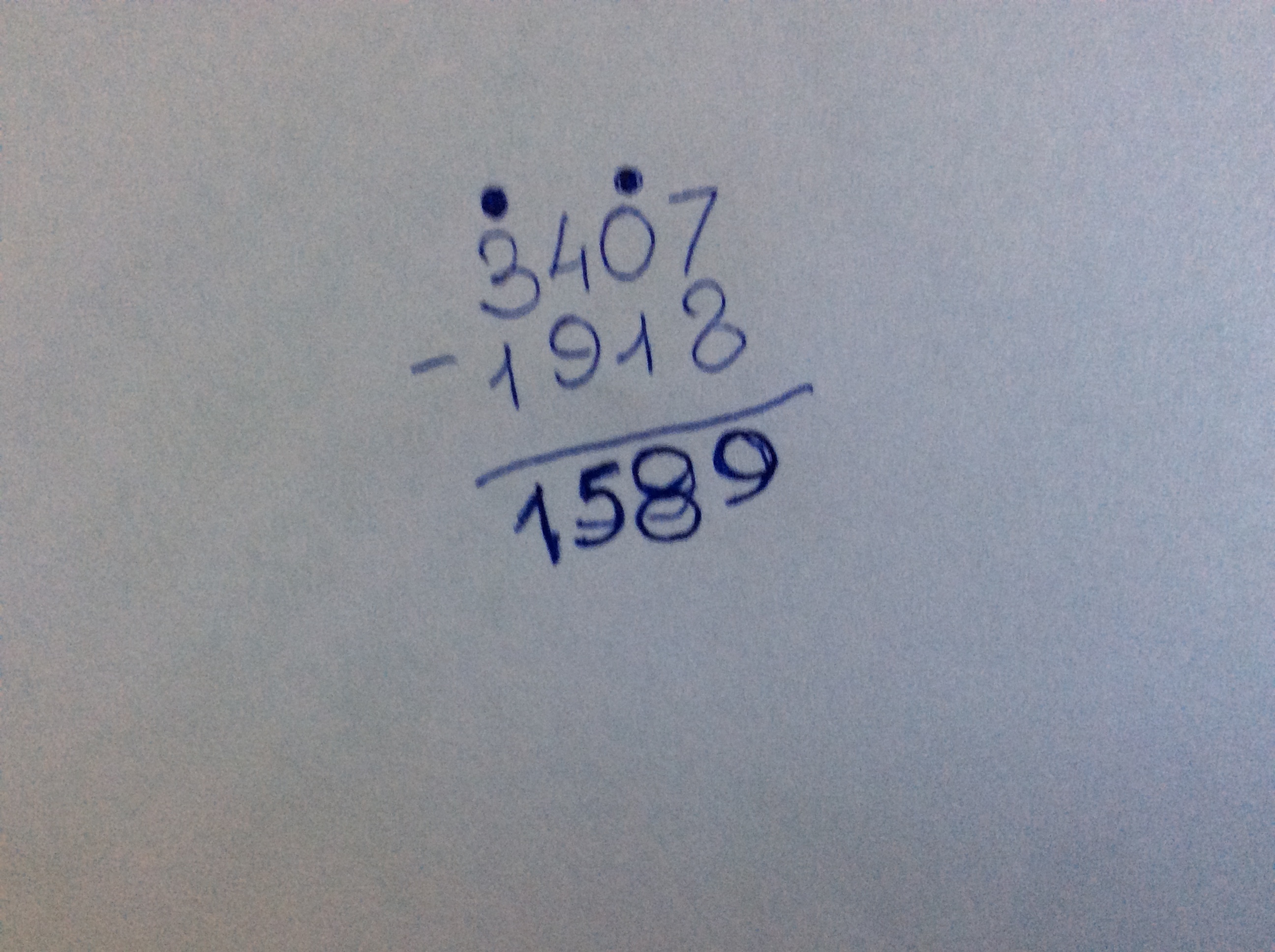 3407-1918, именно в столбик если можно фото и быстро ,а В СТОЛБИК ПОТОМУ ЧТО НЕ МОГУ понять У 0 ЗАНИМАЕТСЯ ИЛИ НЕТ(ФОТО СРОЧНО)