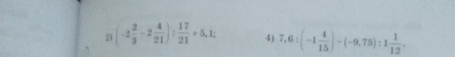 2) (-2 2/3 - 2 4/21) : 17/21 +5,1 = -0,9