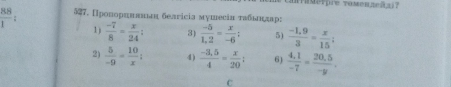 4) -3,5/4=х/20 5) -1,9/3=х/15 6) 4,1/-7=20,5/-у
