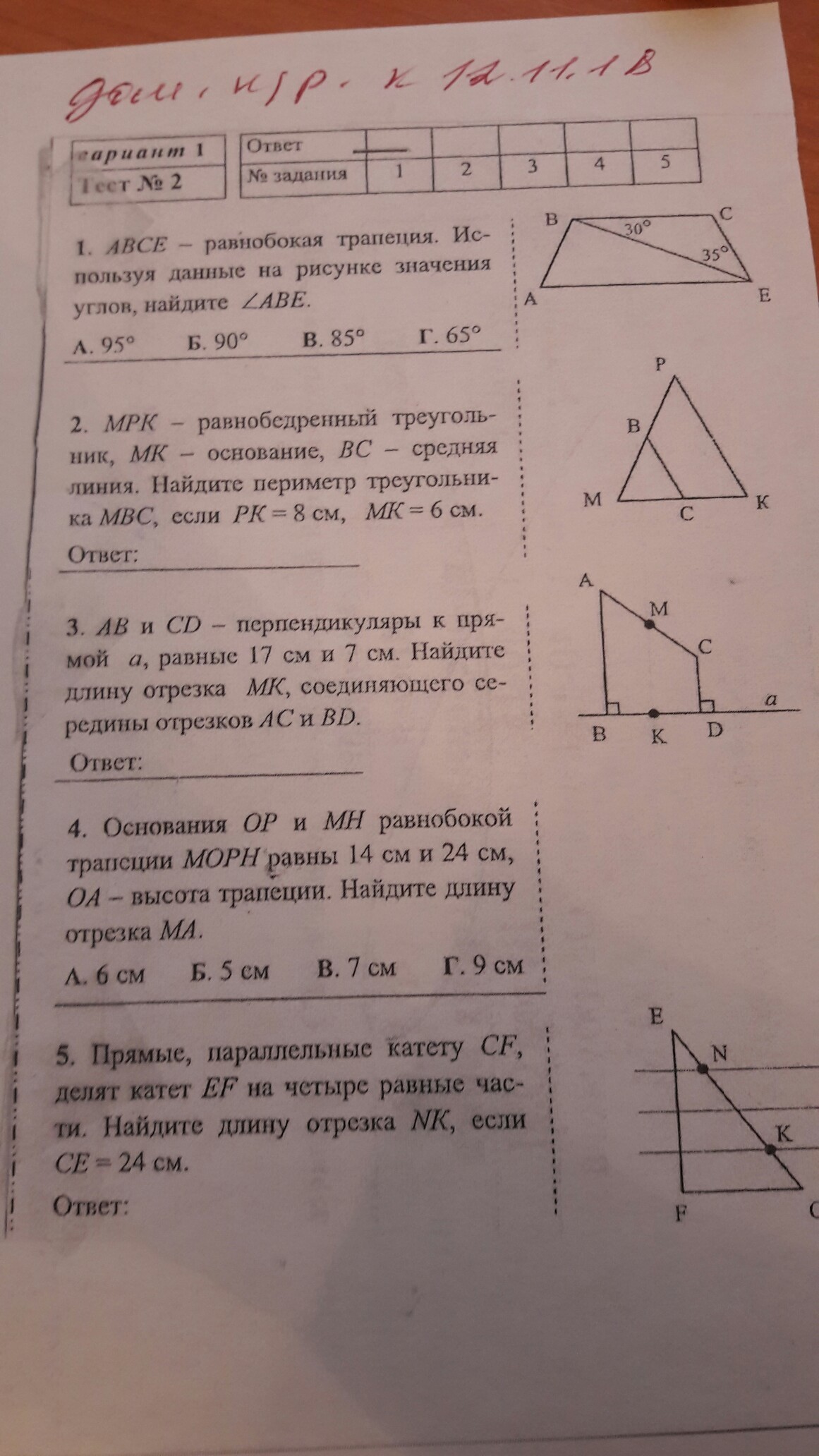 1. ∠ BCE=∠ABС=180°-30°-35°=115°,т.к. трапеция равнобедренная и углы при основании равны