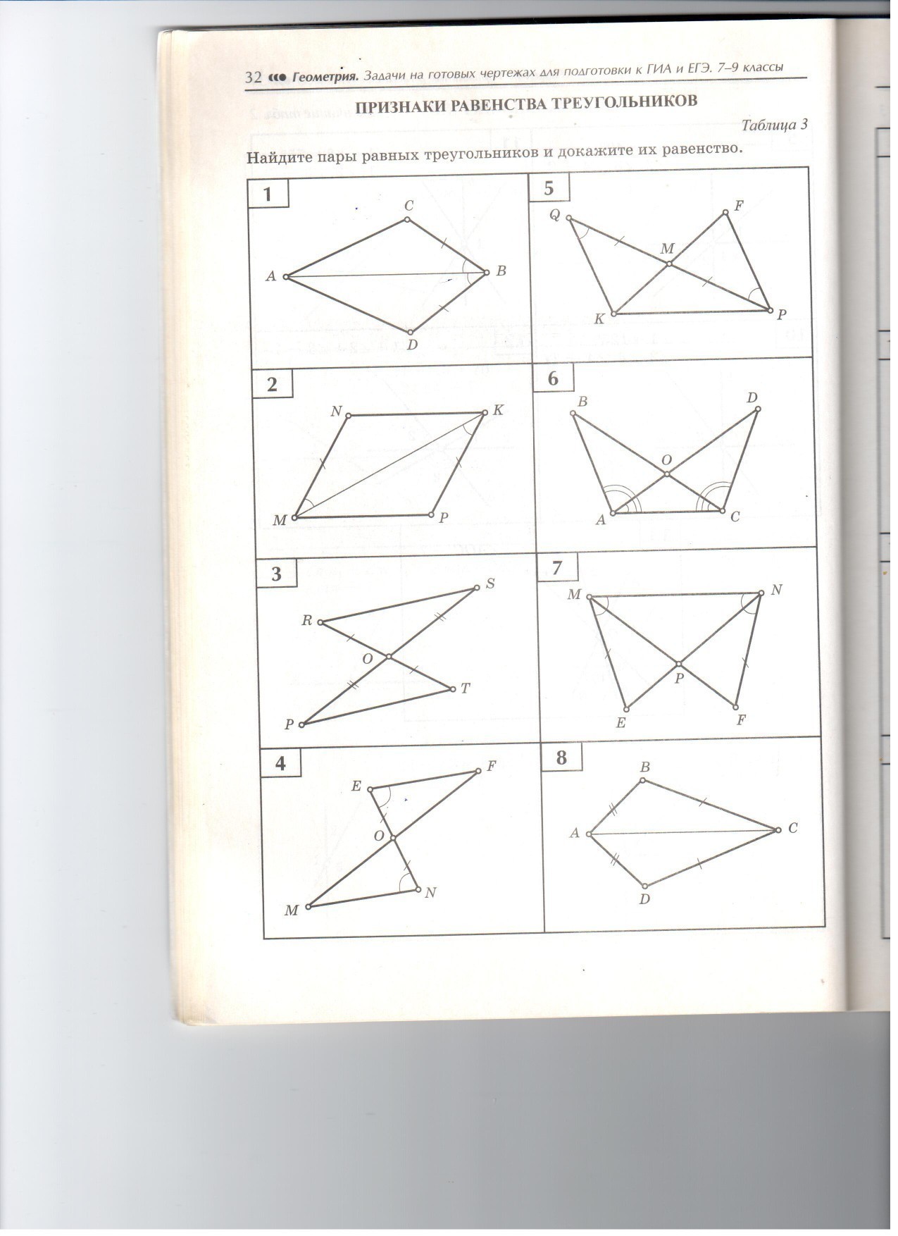 7) Треугольники равны по равным сторонам EO - NO, равным углам EOF - NOM(как вертикальные), FEO - ONM. Это 2 признак.