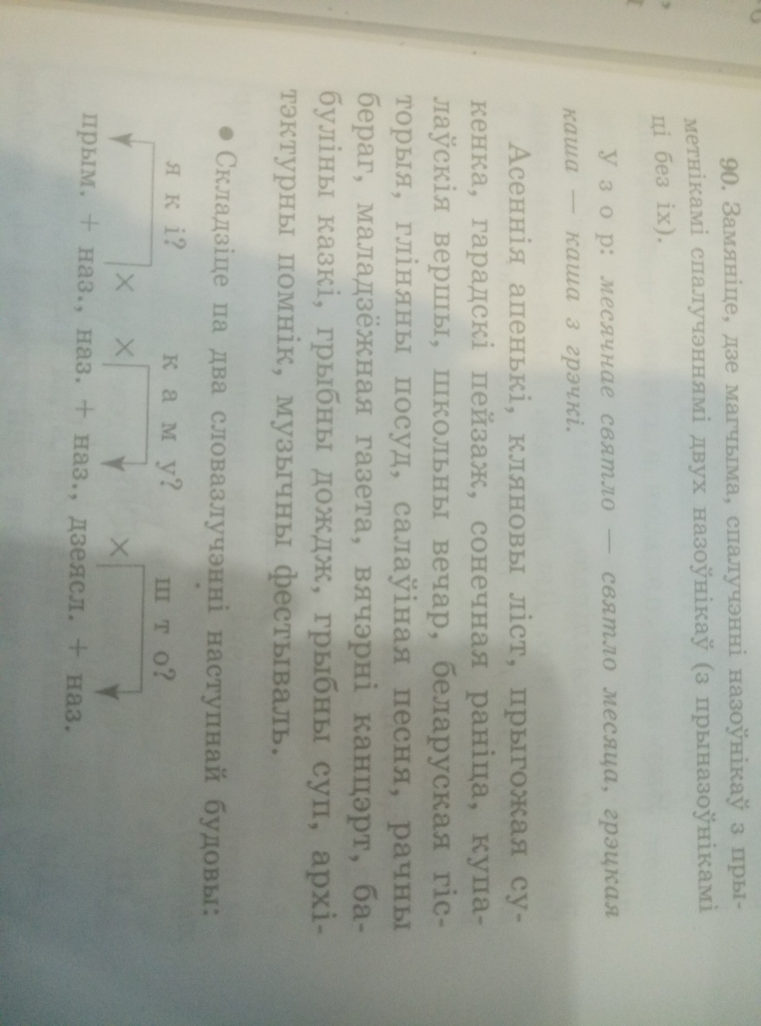Нельга ператварыць, ліст з клёна, нельга ператварыць, пейзаж горада, раніца з сонцам, вершы Купалы, вечар у школе, гісторыя Беларусі, посуд з гліны, песня салаўя, бераг ракі, газета для моладзі, замяніць нельга, казкі бабулі, нельга замяніць, суп з грыбоў, помнік архітэктуры, фестываль музыкі