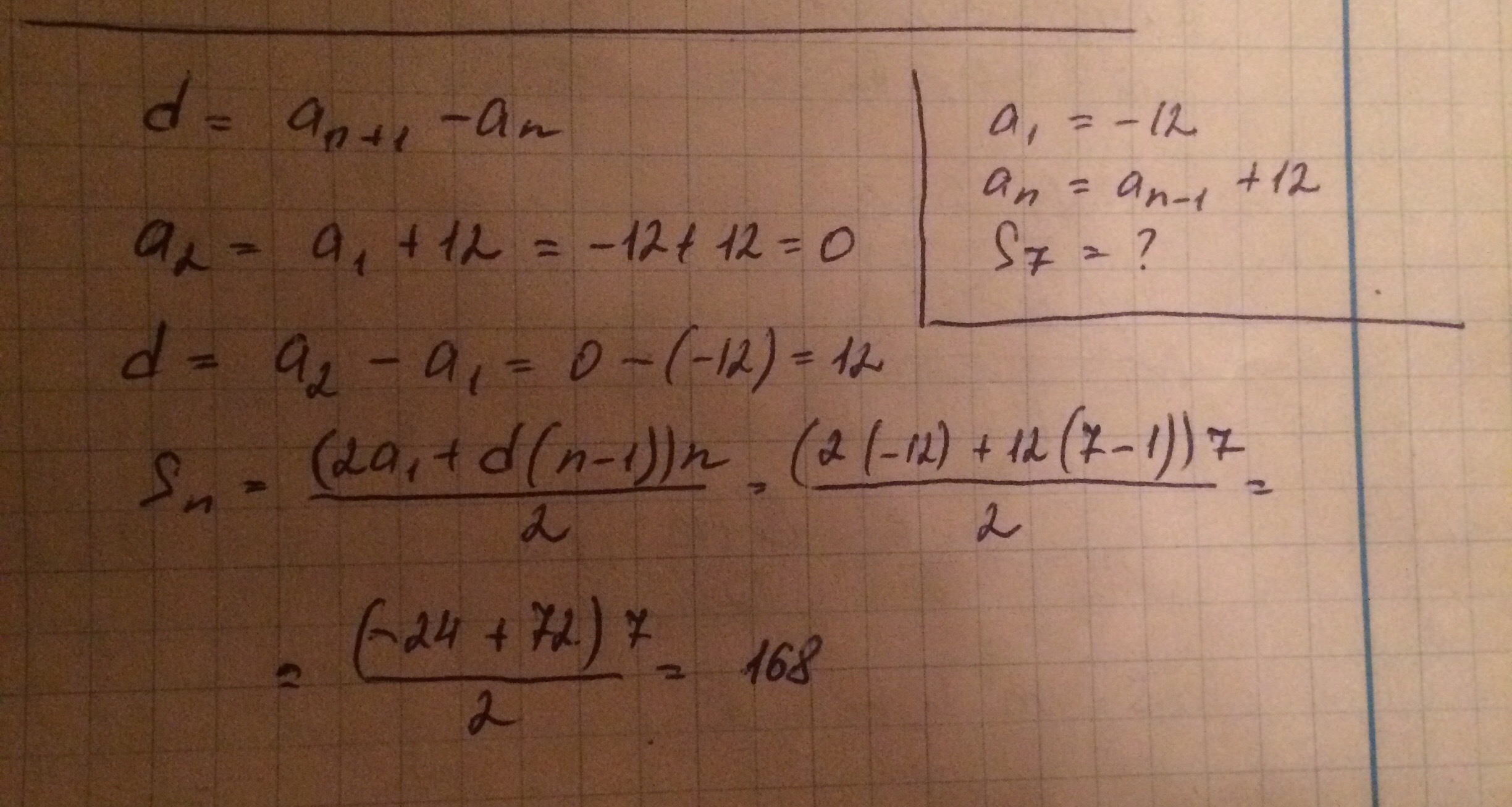 затем сумму первых 7 членов