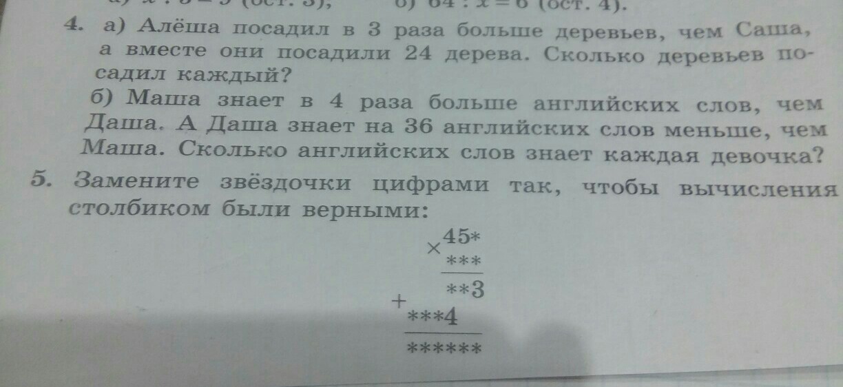 Ответ : саша посадил 6 деревьев, алеша 18 деревьев.