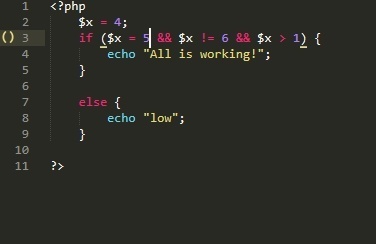 Скорее всего, вместо "$x=5" должно стоять "$x==5"
