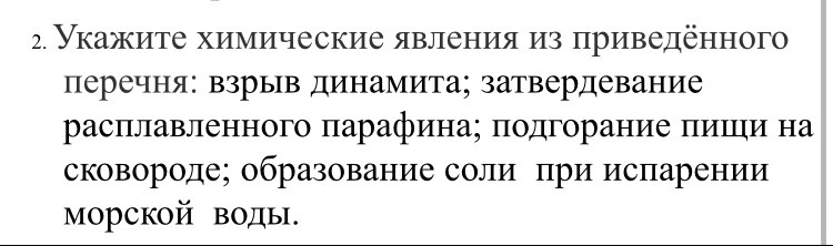 затвердевание расплавленного парафина; образование соли при испарений морской воды.