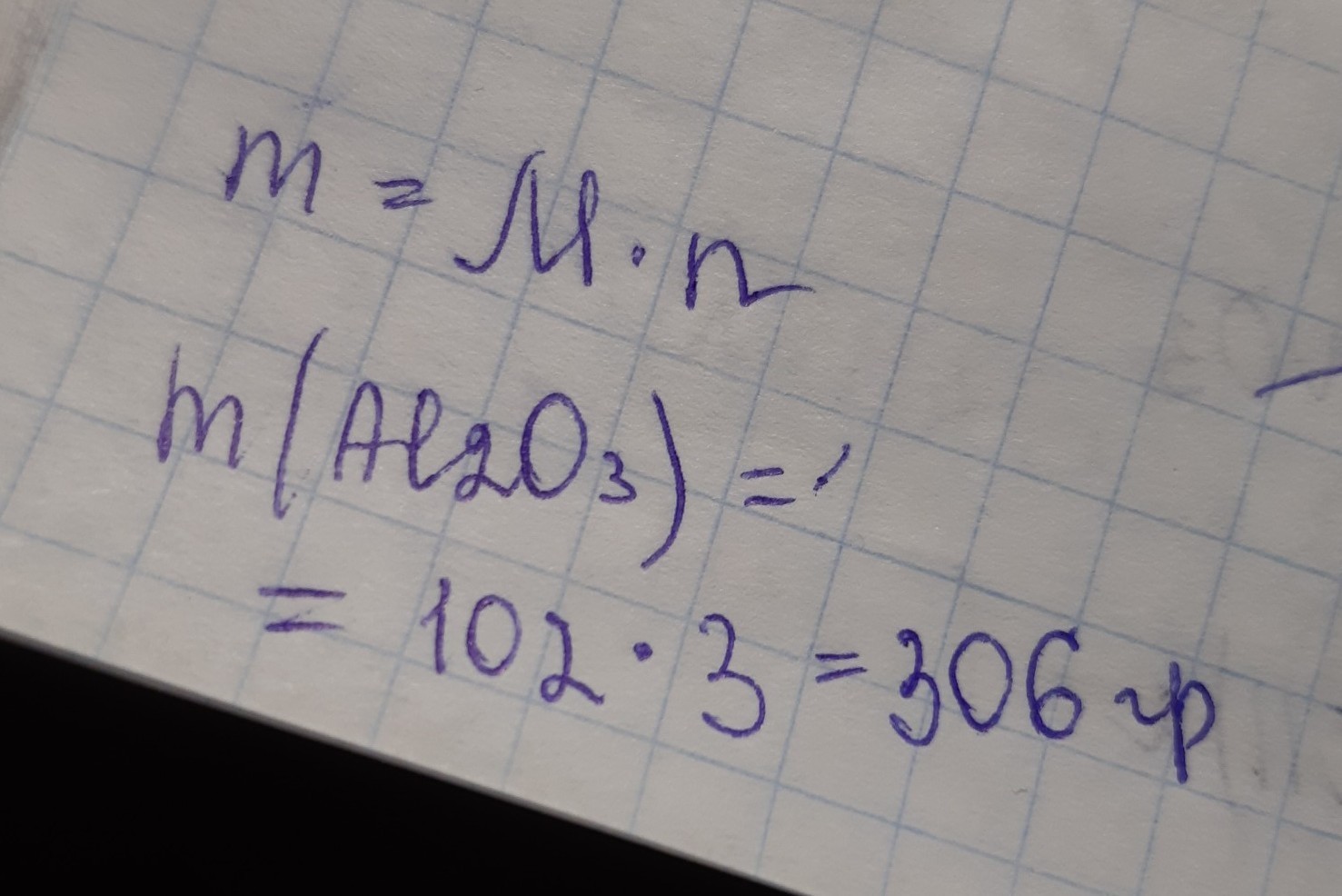 m(Al2O3) = n(Al2O3)M(Al2O3) = 3 * (2 * 27 + 3 * 16) = 3 * 102 = 306 г