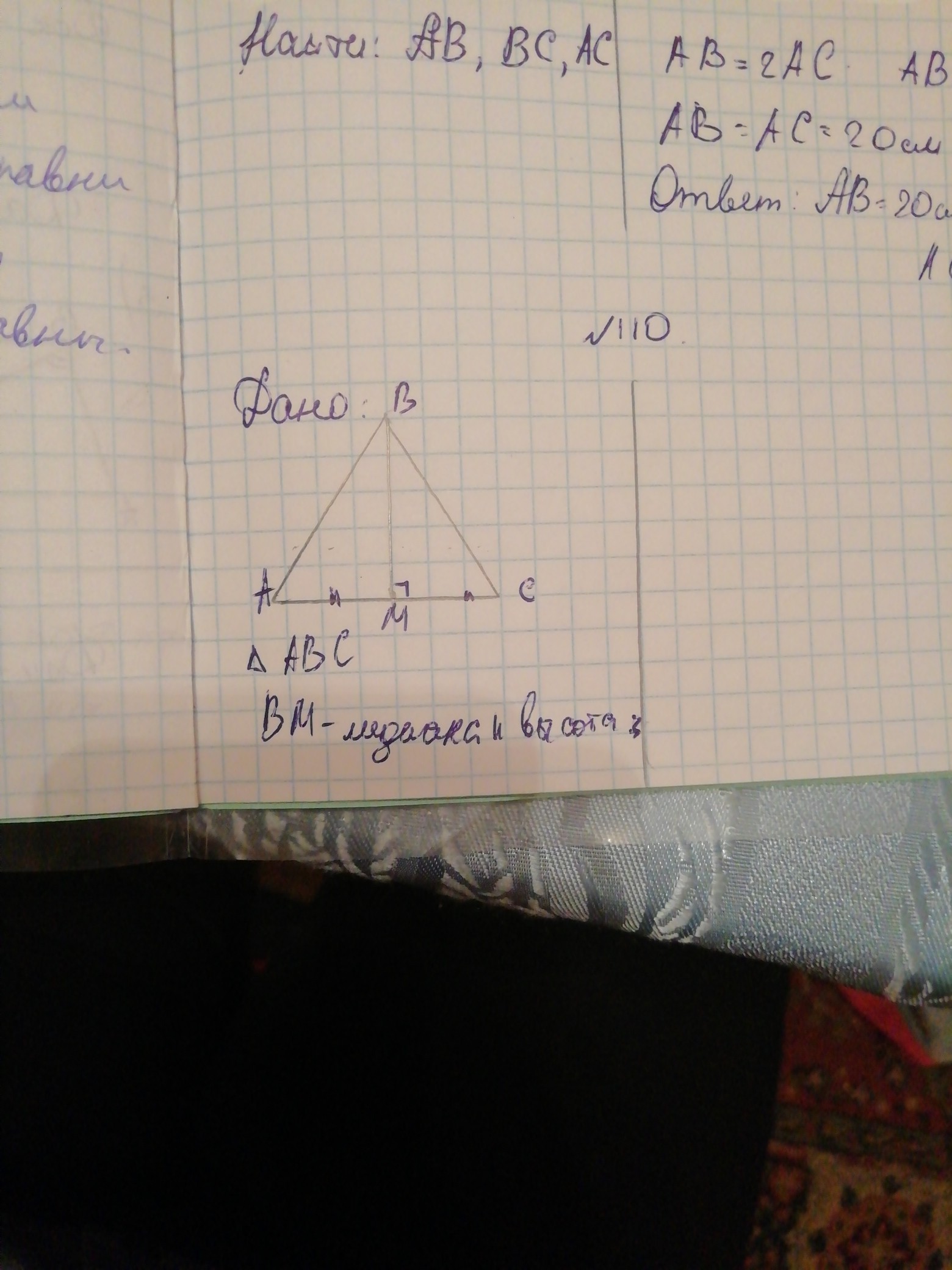 Док-ть, что если медиана треугольника является его высотой, то треугольник равнобедренный.
