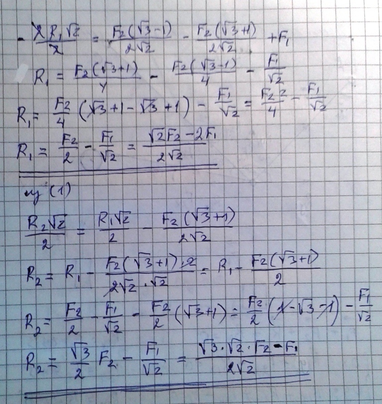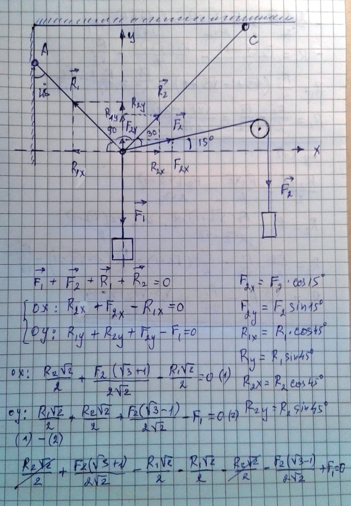 помогите решить задачу на равновесие сил в аналитической форме ( Дано F1-20 ;F2-15 ; Найти R1 и R2 рисунок номер 9) прям срочно помогите сегодня надо, буду благодарен,
