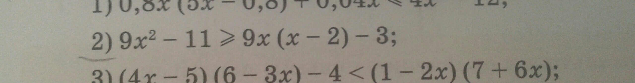 9x² - 11 ≥ 9x(x - 2) - 3