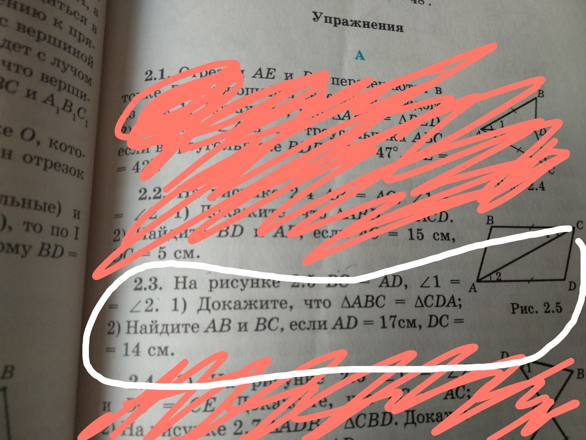 Сторона АС общая. ВС=АD по условию. Улол 1 равен углу 2 по условию.