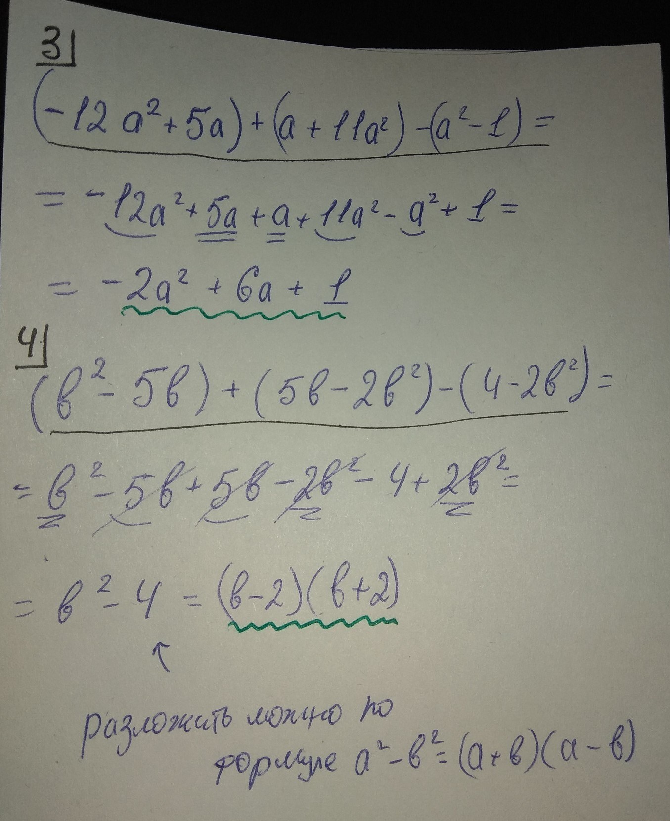один нюанс, когда перед скобкой стоит минус, нужно, когда раскрываем скобки, менять знак каждого "числа" на противоположный, к примеру